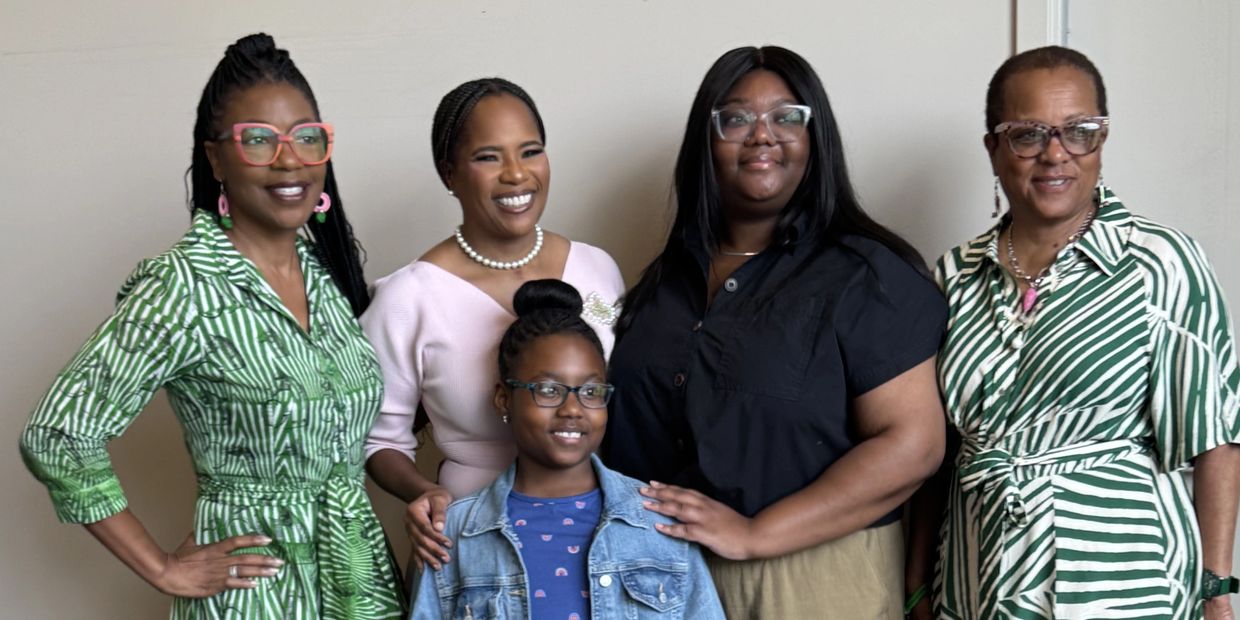 Pictured: Atlanta Habitat for Humanity homeowner Shantearia May and her niece with Pi Alpha Omega's President and 40th Anniversary Committee Chairman, Tori Silas, and Co-Chairman, Valda Gibson.